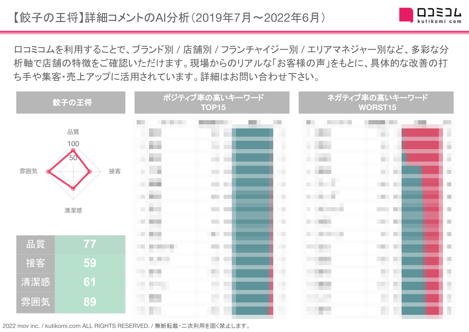 口コミラボを運営する株式会社movでは、口コミサイトを”もっと”売上に変える『口コミコム』の分析機能を用いてレポートを作成しています。