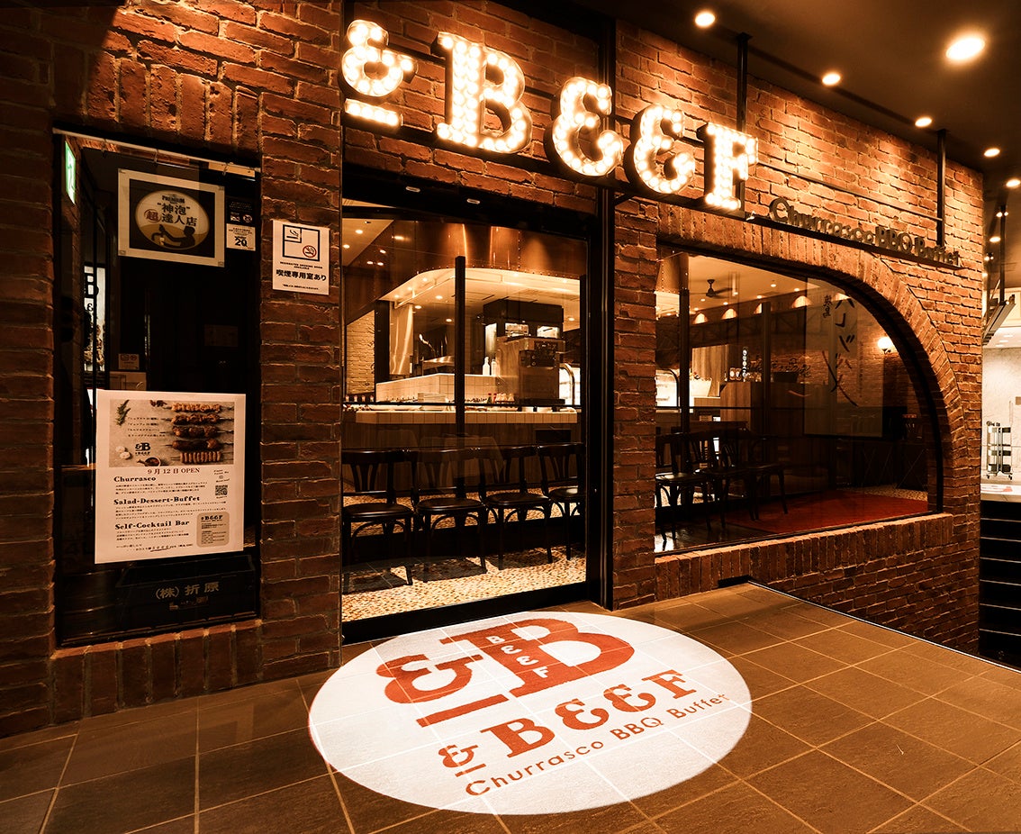 この度オープンする『&BEEF』は、「お客様に五感を使って楽しみ、遊び、気分を高揚させていただきたい」という思いから「Buffet」「Self‐cocktail bar」「Entertainment」&「シュラスコ」から名付けました。