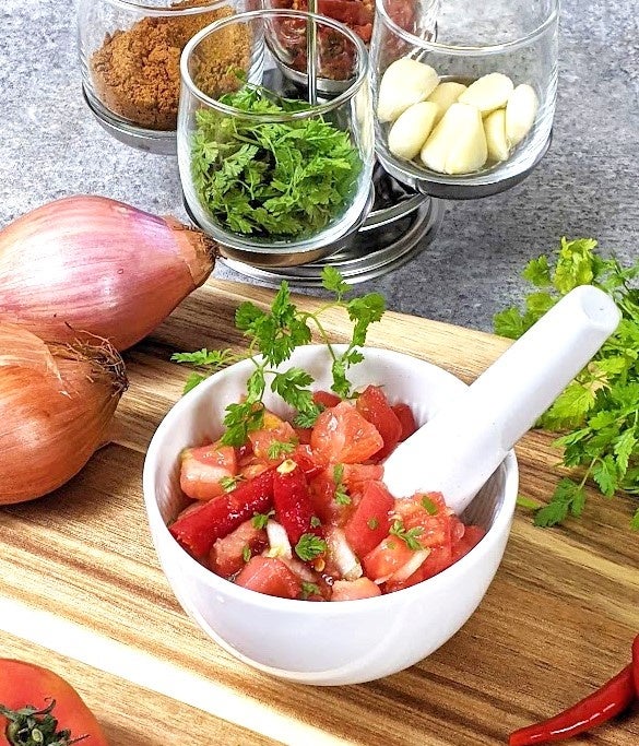 お肉に付けるソースは、「フレッシュサルサソース」「オニオンソース」と月替わりのソースの計5種。おすすめの「フレッシュサルサソース」は、お客様ご自身で調合し、小鉢ですり潰しながらお好みに合わせて作っていただきます。