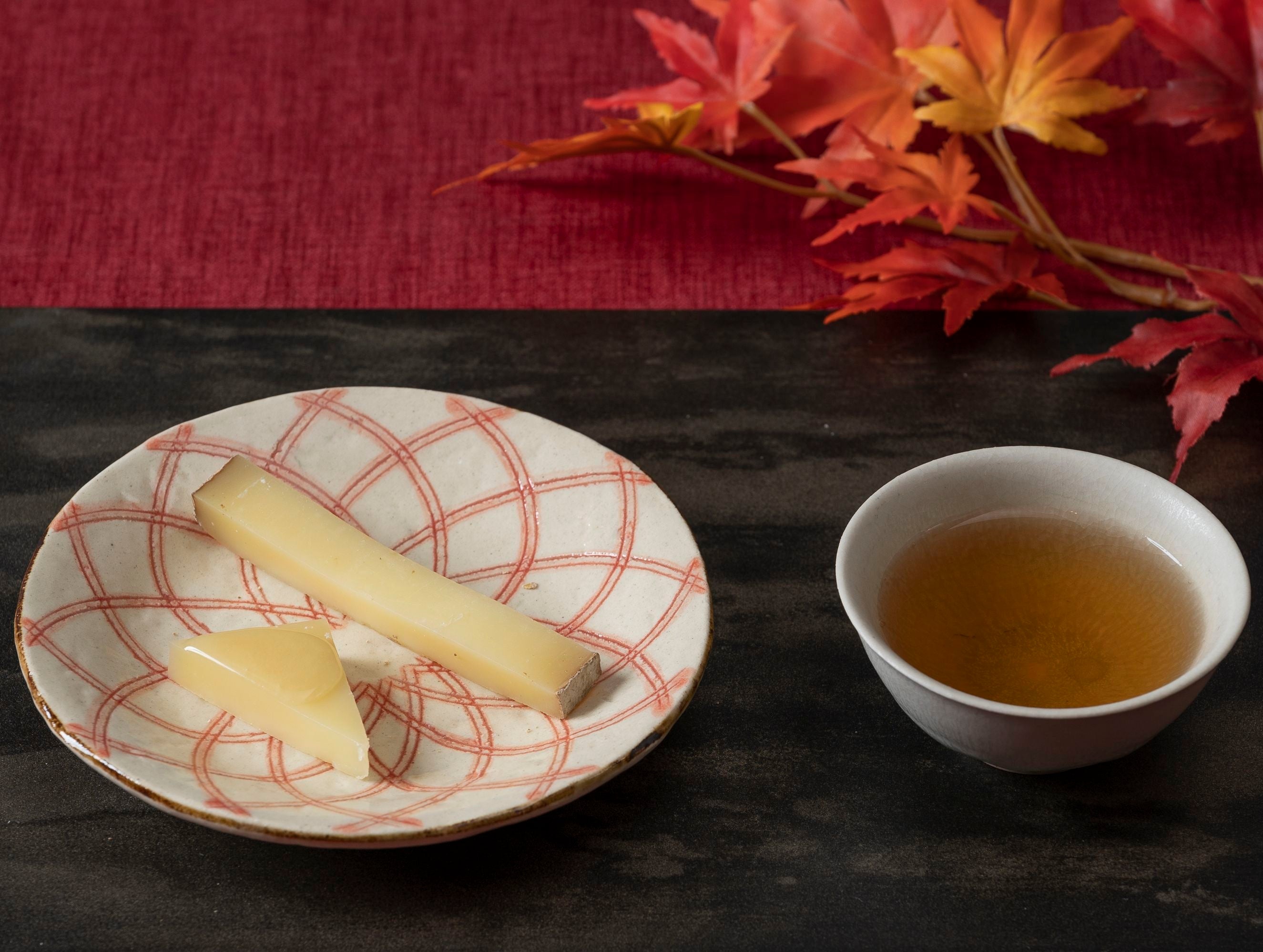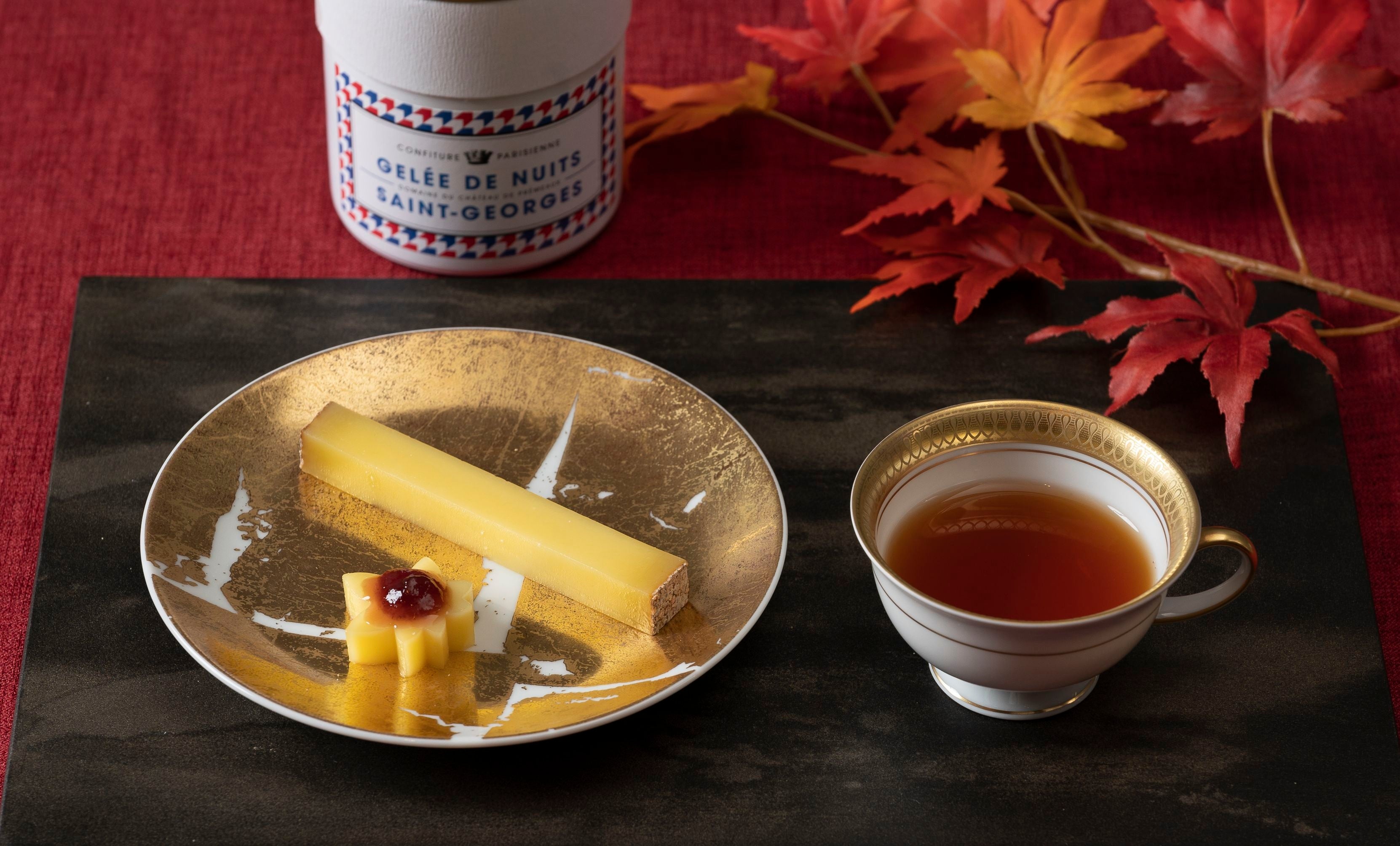 焙煎した香ばしい香りが特徴のほうじ茶には、同じようにロースト系のナッツのような風味を持つ熟成されたコンテが良く合います。冬のミルクで作られたコンテは、牛が干草を食べている時期のため白っぽいアイボリー色が特徴で、栗のようなほくほくとした食感と穏やかな余韻が長く続きます。クリーミーな非加熱の白い生はちみつを合わせるとまるで塩キャラメルのような風味にもなり、コンテの風味が引き立ちます。ほうじ茶は口の中をさっぱりとさせるウォッシュ効果もあり、秋の夜長にエンドレスで味わえる組み合わせです。
