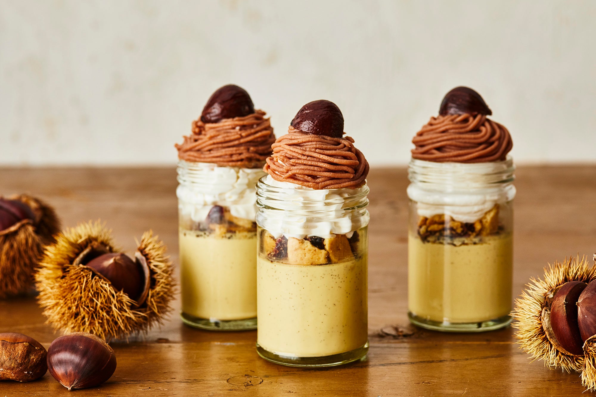 - ■濃厚な自家製プリンをヨーロッパ栗のモンブランにアレンジした瓶入りスイーツも登場