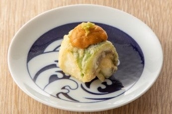 【天ぷら】雲丹添え 真鯛の大葉巻き