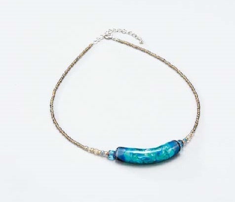 ≪第2弾限定≫北見市【工房Glass Soul】とんぼ玉ネックレス「清流(曲げ玉)」