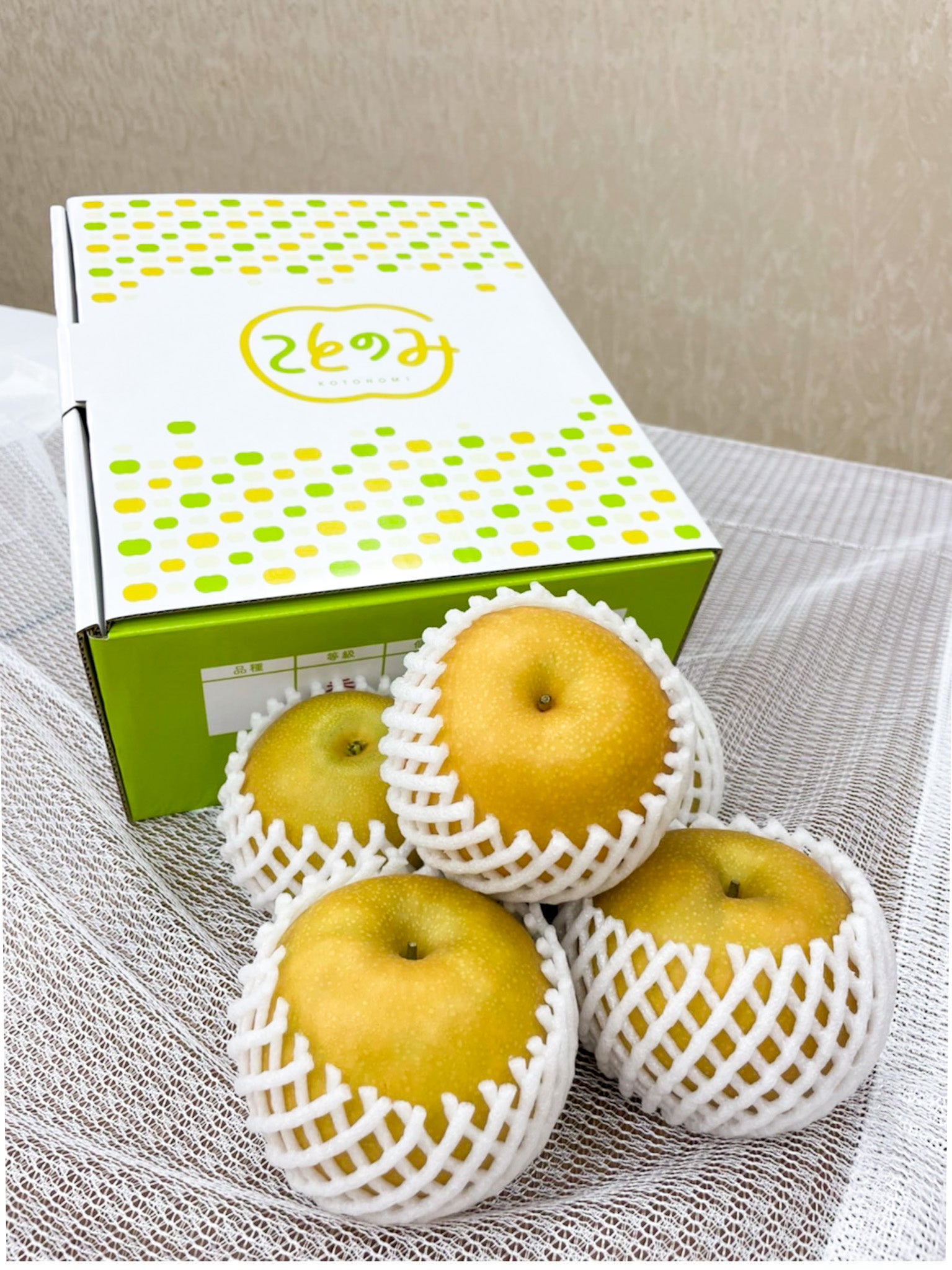 今回「ことのみ」としてお届けする品種は、「あきづき」で、果肉は柔らかく多汁、酸味が少なく上品な甘さを味わえる逸品。さらに、1玉あたりのサイズが大きく、栄えすることから、贈答品としてもご利用いただけ、数ある荒尾梨の中から、厳選したものを「ことのみ」としています。また、産地である熊本県荒尾市は日本最大級の干拓をもつ有明海に面し、豊かな水源と穏やかな気候に恵まれ、農業には最適な環境が揃っていたため、上質な作物を生産することができ、日本有数の梨産地となっています。
