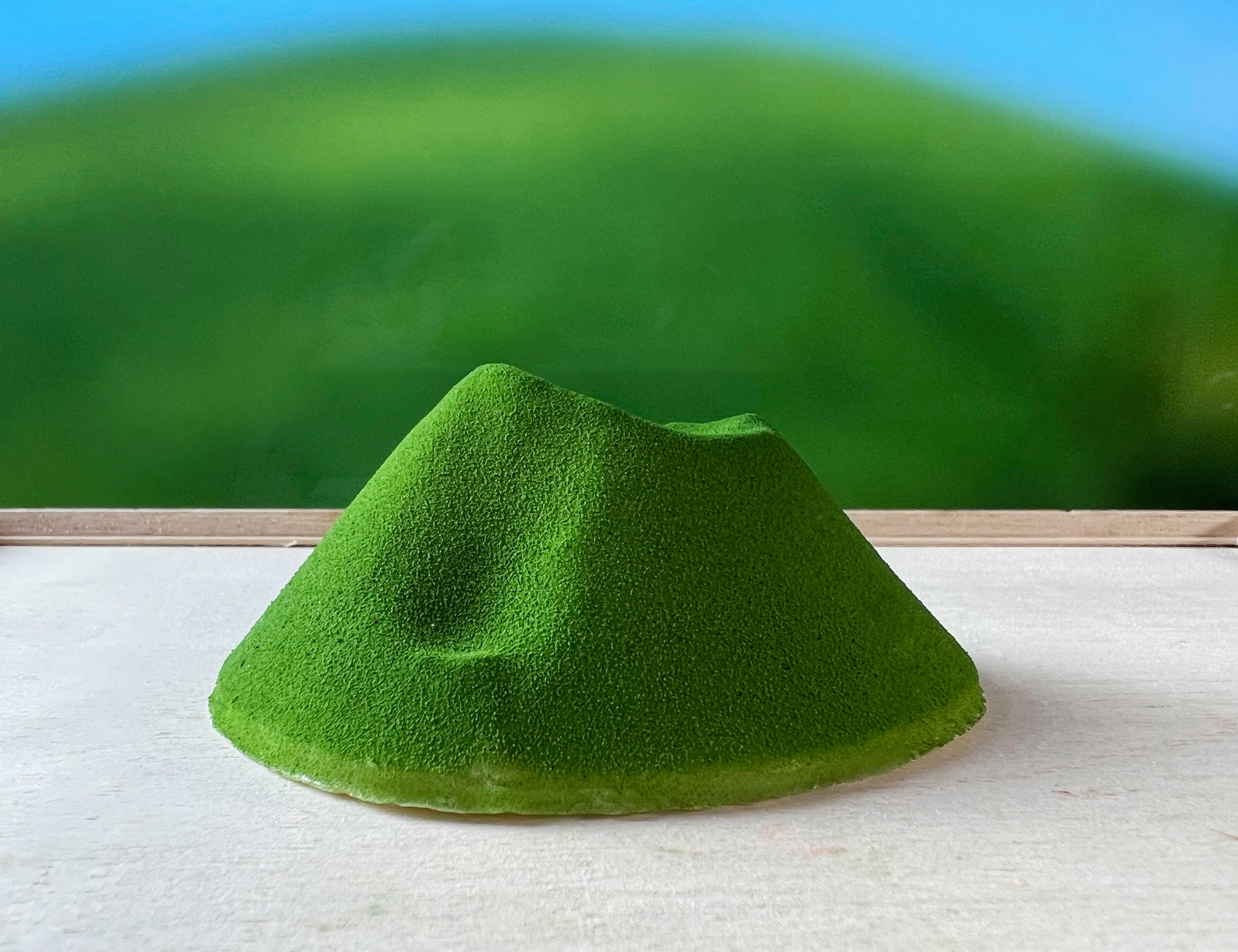伊勢丹新宿店で販売される商品は、日本の山々をそのまま手のひらサイズにした「山菓子」。日本に古来より根付く雛文化に着目した、まるで食べられるジオラマのようなお菓子です。国土地理院の実際の地形データを使って、型を制作。本物の山の稜線を忠実に再現した精細な仕上がりとなりました。