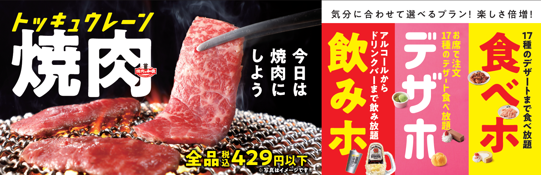 2022年3月末よりカルビやハラミといった焼肉メニューそしてビールやハイボールなどアルコールメニューまでも「一品390円(税込429円)以下」でのご提供という大幅な値下げを実施。そして、もっと気軽にもっと楽しく「焼肉」時間を過ごしていただきたいと、多様化するお客様の様々なニーズにお応えすべく、飲み放題プランやプレミアム焼肉コースをはじめ、食べ放題プランもご用意してまいりました。