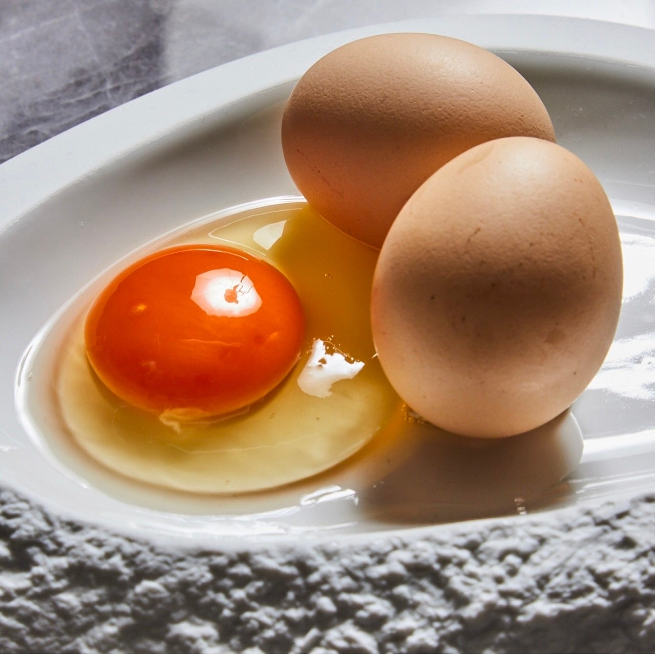 落水正商店のこだわりプレミアム太陽卵を使用。三十種類の自然素材を独自配合、天然無添加の安全な飼料を開発した安心な卵です。深いコクと幅のあるまろやかな自然な甘みが特徴で、味が濃いのに決してでしゃばらない絶妙なバランスの味わい。ビタミンEが普通卵の10倍も含み、ミネラルも豊富です。その他の栄養も含まれる上、総コレステロールが普通の卵より低い万能卵です。