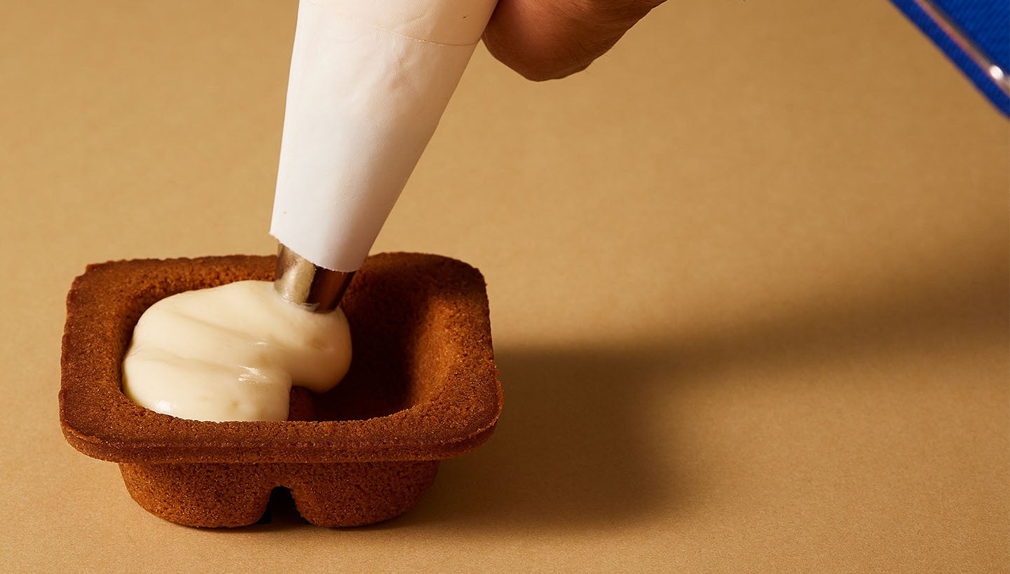 柔らかさ、栗の甘さ、チーズの塩味とコクをどっしり受け止めるプレスドアーモンドクッキー。ザクザク食感とバターの香りが全体の味をまとめます。