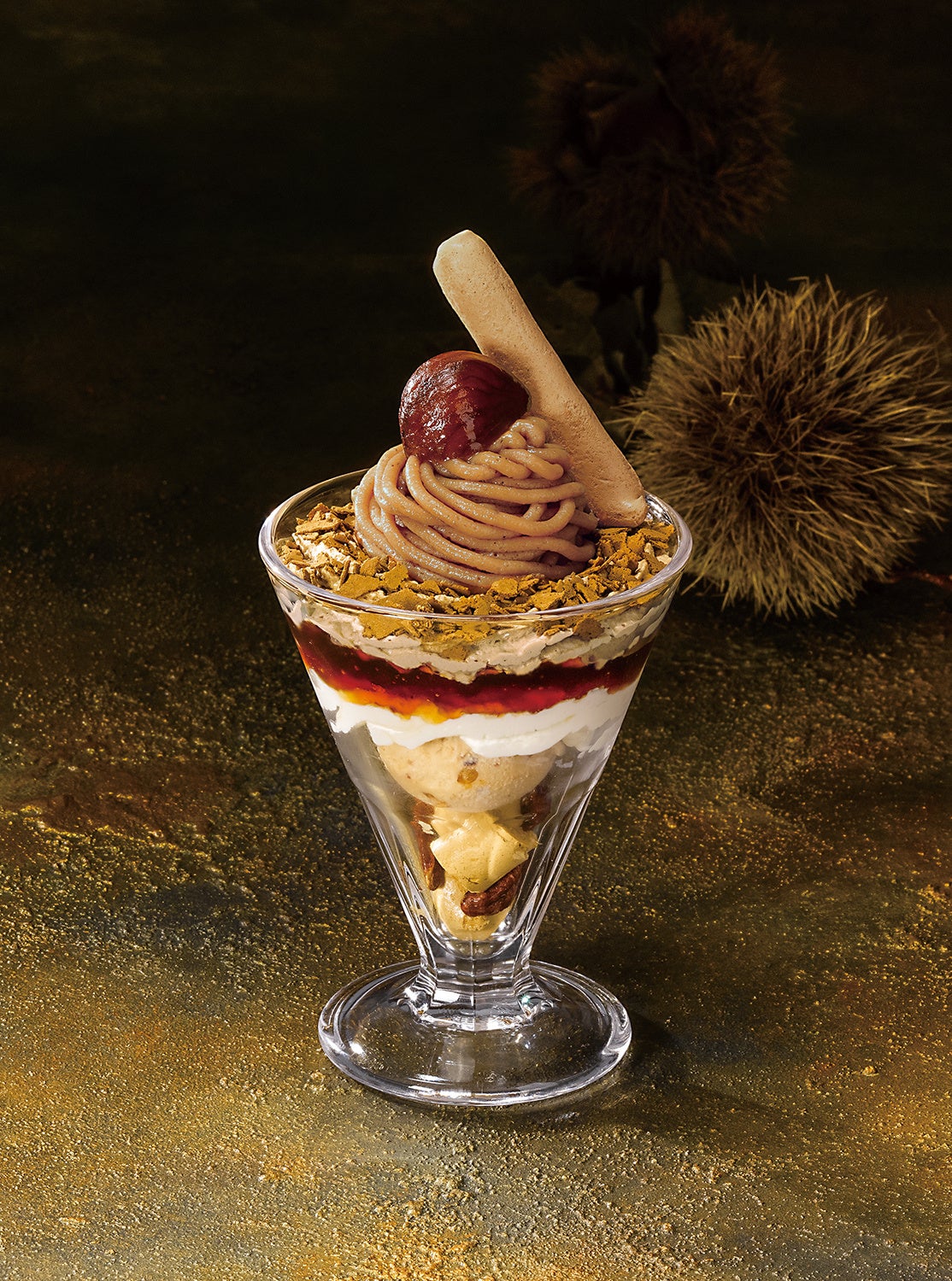 【渋皮栗とほうじ茶のブリュレパフェ】