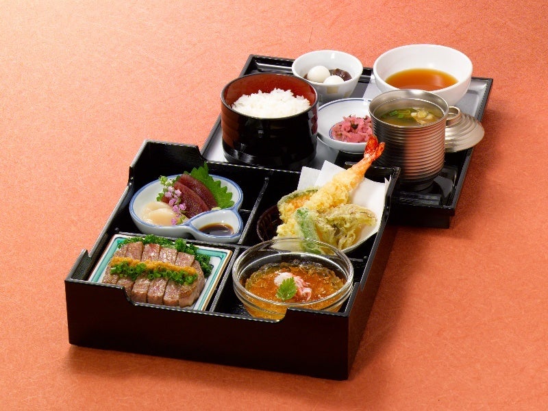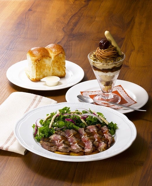 ロイヤルホスト名古屋星ヶ丘店では、オニオングラタンスープやコスモドリア、オムライス、黒×黒ハンバーグ、アンガスサーロインステーキなどロイヤルホストのバラエティ豊かな洋食のほか、名古屋星ヶ丘店限定の特別メニュー「三越御膳」や「天ぷらせいろそば」をラインアップしました。また、お店で1枚ずつ焼き上げるパンケーキやクラブハウスサンドなどの軽食、カフェタイムにおすすめの季節の素材で作るパフェ、お子さまにはキッズメニューもご用意しています。