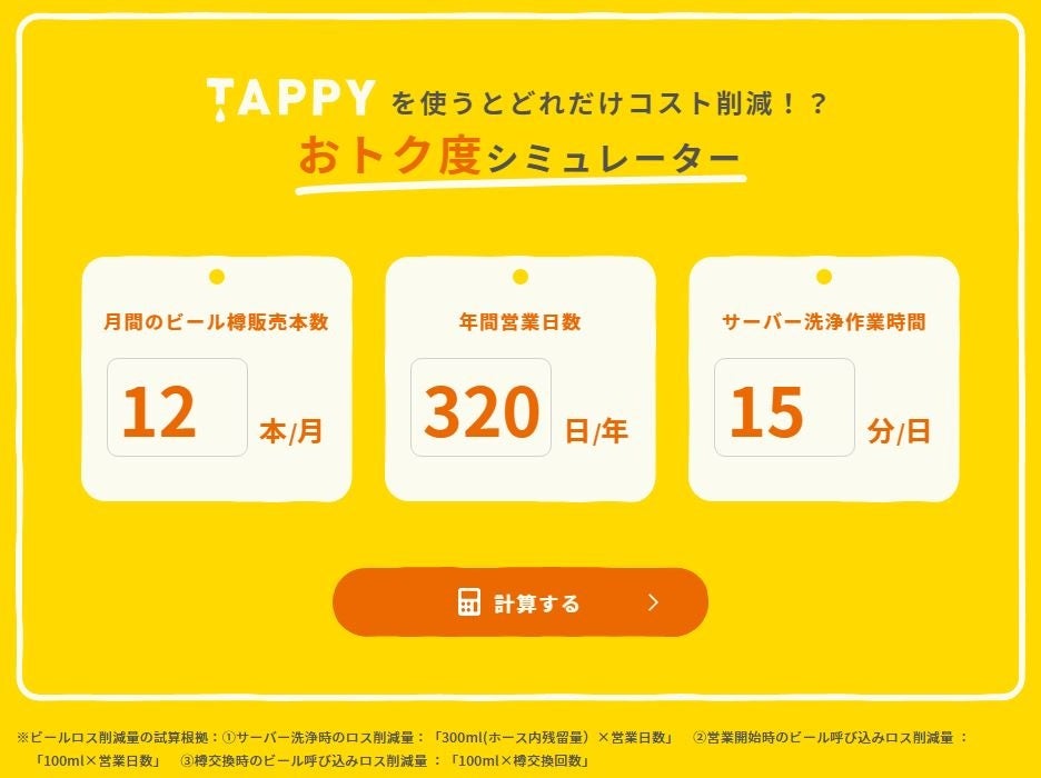また、2022年7月に開設した「TAPPY」公式サイトを、お客様の「TAPPY」の理解促進に活用いただいています。特に、「TAPPY」公式サイトに掲載している「おトク度シミュレーター」機能によるコスト削減試算については「こんなにおトクになるとは驚いた。」と、飲食店より