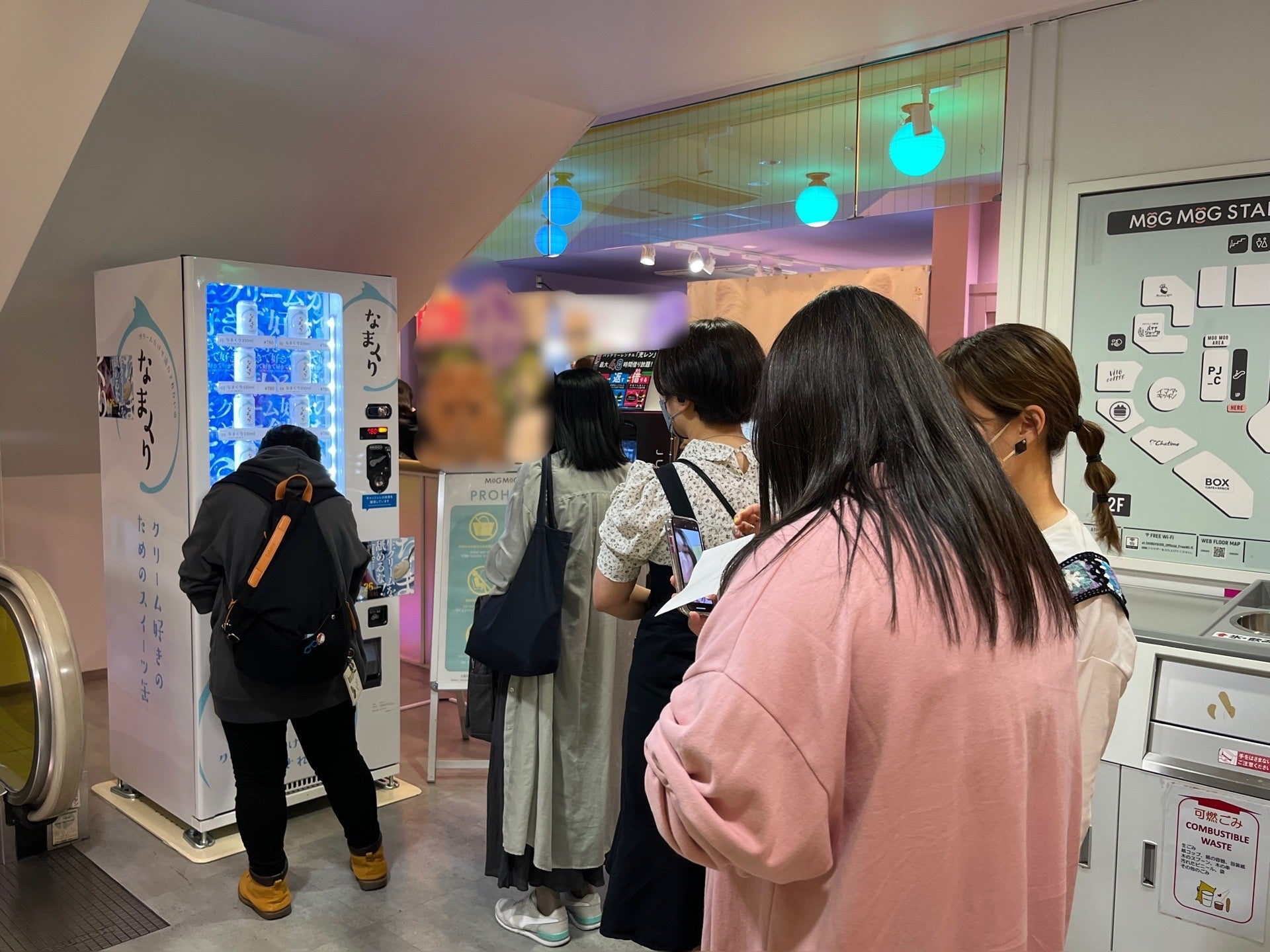 『なまくり』はこれまでになかった新感覚スイーツ。1台目にオープンしたSHIBUYA109渋谷店に訪れるお客様の目を引き続け連日自販機に行列ができています。今までになかった自販機、そんな話題性のお陰で開業3ヵ月で累計販売数1万缶突破いたしました。