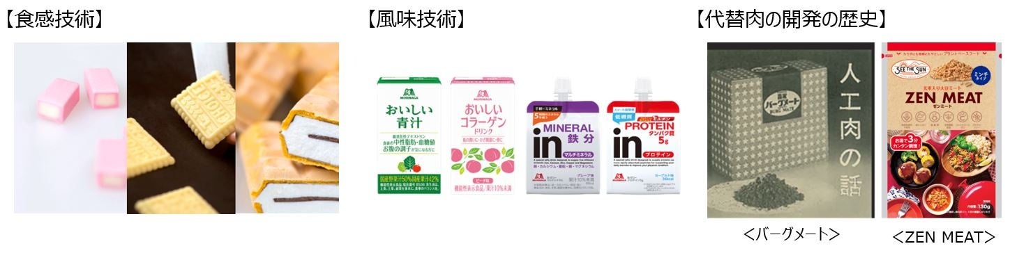 【食感技術】・・・「ハイチュウ」のチューイング性や「森永ビスケット」の多様な食感、「チョコモナカジャンボ」のパリパリ食感に至るまで、幅広い商品を研究開発して得た技術により、繊維感がある独特の食感を実現しました。