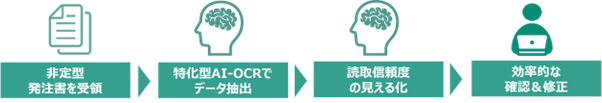一般的に、これらの発注書のフォーマットは、取引先ごとに大きく異なり、統一されていません。見た目がばらばらである発注書は、読取り業務に多大な労力を要するため、受発注業務の生産性を低下させる大きな要因の一つでした。また多くのOCRサービスは、こうした非定型帳票の読取りに帳票の事前定義が必要であり、活用することが困難でした。