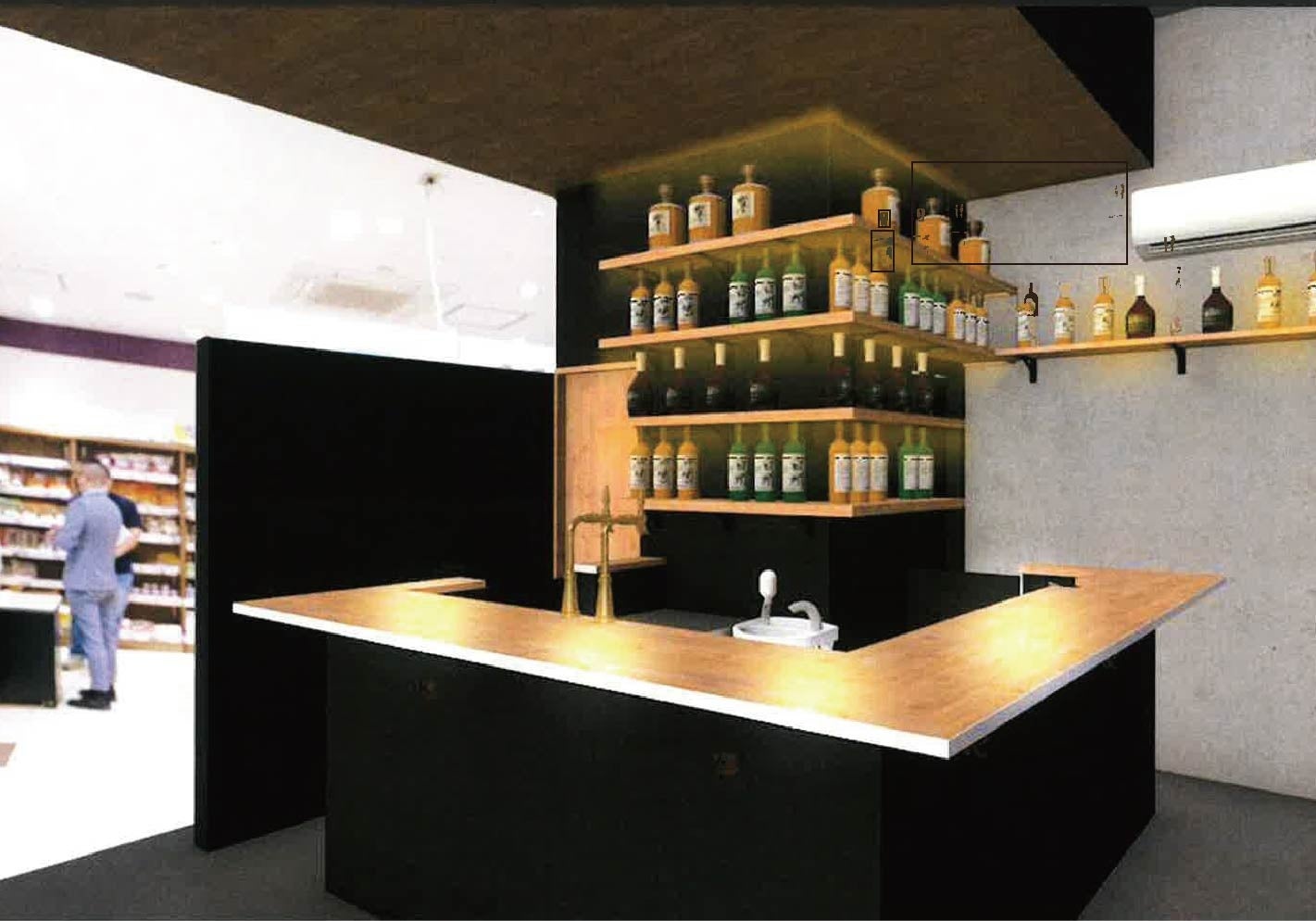 お酒の美術館は大手コンビニのファミリーマートやローソンとのコラボ店舗コンビニバーや近鉄難波駅や京阪丹波橋駅など駅への出店。今回は創業30年の京都発祥のスーパー「フレスコ」とのコラボで、日本初のスーパーマーケット内のバーとなります。ウイスキーや、ブランデーを始めとした希少なオールドボトルを数多く取り揃えており、厳選されたワイン・シャンパン、フルーツカクテル、河原町丸太町店オリジナルブレンドもご用意しております。