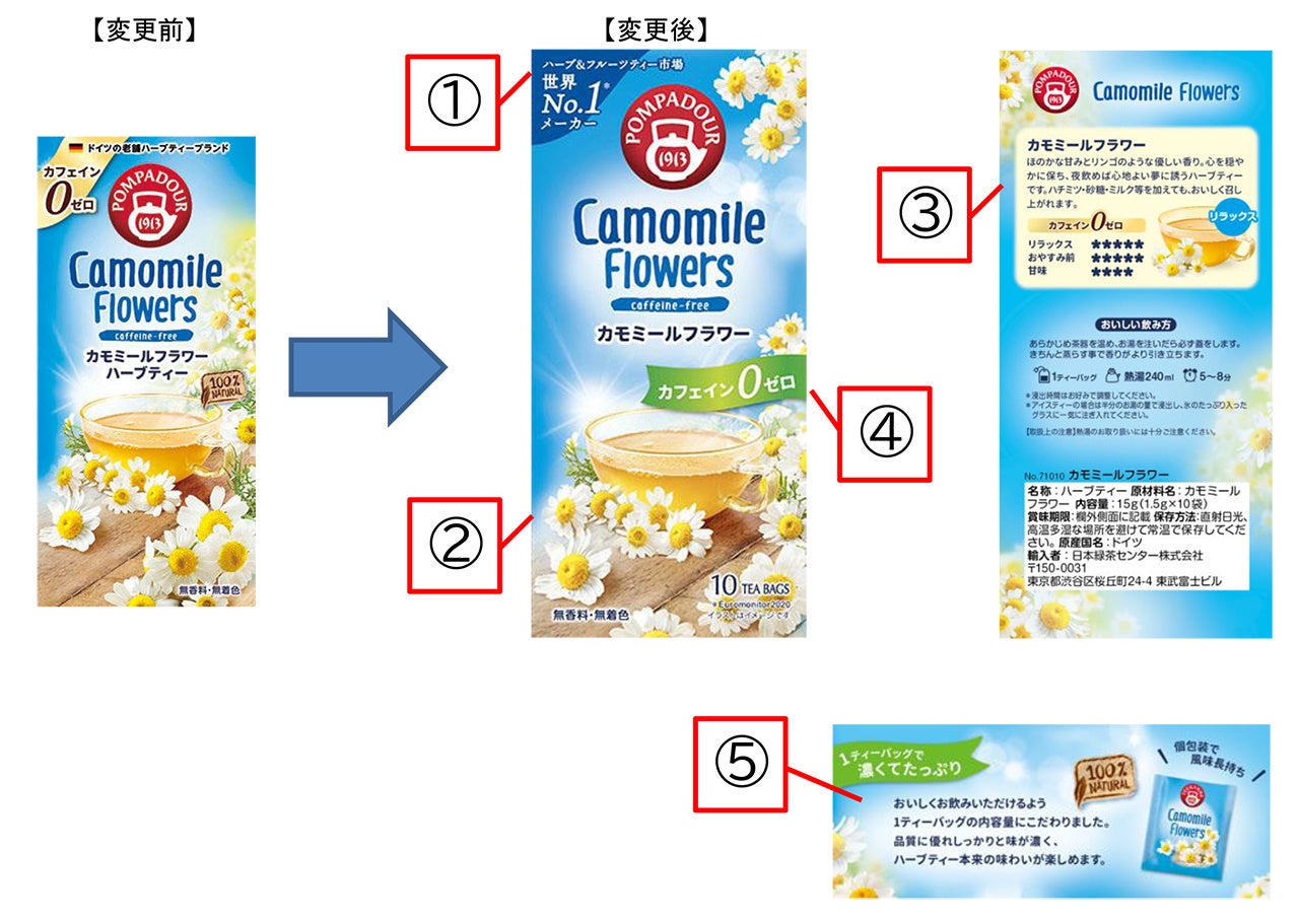 ポンパドール・ハーブティー、クレイジーソルト、茶語(Cha-Yu)、ティーブティックを手がける日本緑茶センター株式会社(本社:東京都渋谷区、代表取締役社長:北島大太朗)は、世界的調査会社「ユーロモニター」の分析で、ポンパドールブランドを擁するドイツの老舗ティーメーカーTEEKANNE(ティーカネン)社がハーブ&フルーツティー市場のシェアNo.1を獲得したことを受け、2022年8月26日(金)より商品パッケージデザインを変更いたしました。
