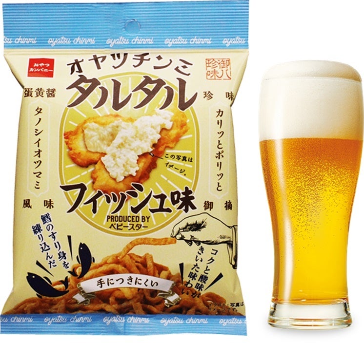 この度登場する新定番フレーバー「タルタルフィッシュ味」は、主原料となるほどまでにタラのすり身を生地に練りこんでフライし、タルタルソースのかかったフィッシュフライの風味に仕上げました。カリッポリッとした揚げ物のおつまみらしい楽しい食感とともに、口いっぱいに広がる味わい深いタラの旨味、タルタルソースの濃厚なコクとほどよい酸味が織りなす絶妙な組み合わせを堪能いただけます。ビールのみならず、冷酒や白ワインともよく合う、おつまみに仕上がりました。