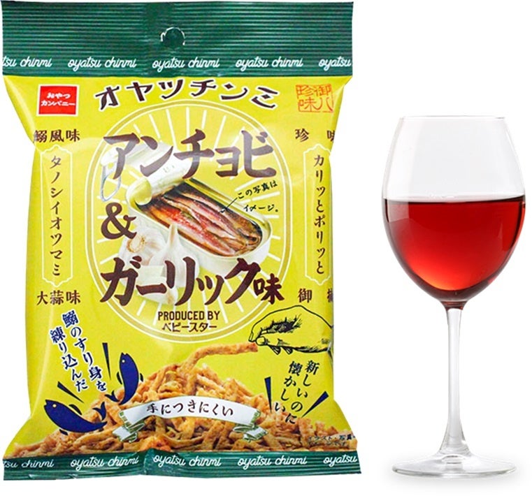 定番フレーバーのイワシのすり身を練り込んだ「アンチョビ&ガーリック味」は、熟成されたイワシの濃厚な旨味と塩気、ガーリックの風味がワインとの相性抜群。
