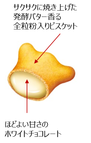 - サクサクに焼き上げた、発酵バターが香る全粒粉入りビスケットの中に、ほどよい甘さのホワイトチョコレートをイン。深い味わいが楽しめます。