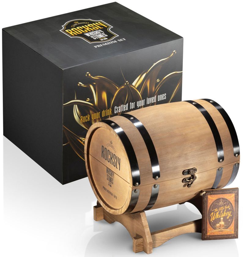 ウイスキーの樽を模した収納ケースと、そのケースを支えるスタンドです。全てのセットがスッキリと収まり、見た目もカッコいいデザインです。