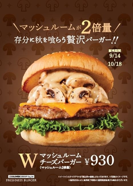 フレッシュネス秋の定番商品であるマッシュルームチーズバーガー‼