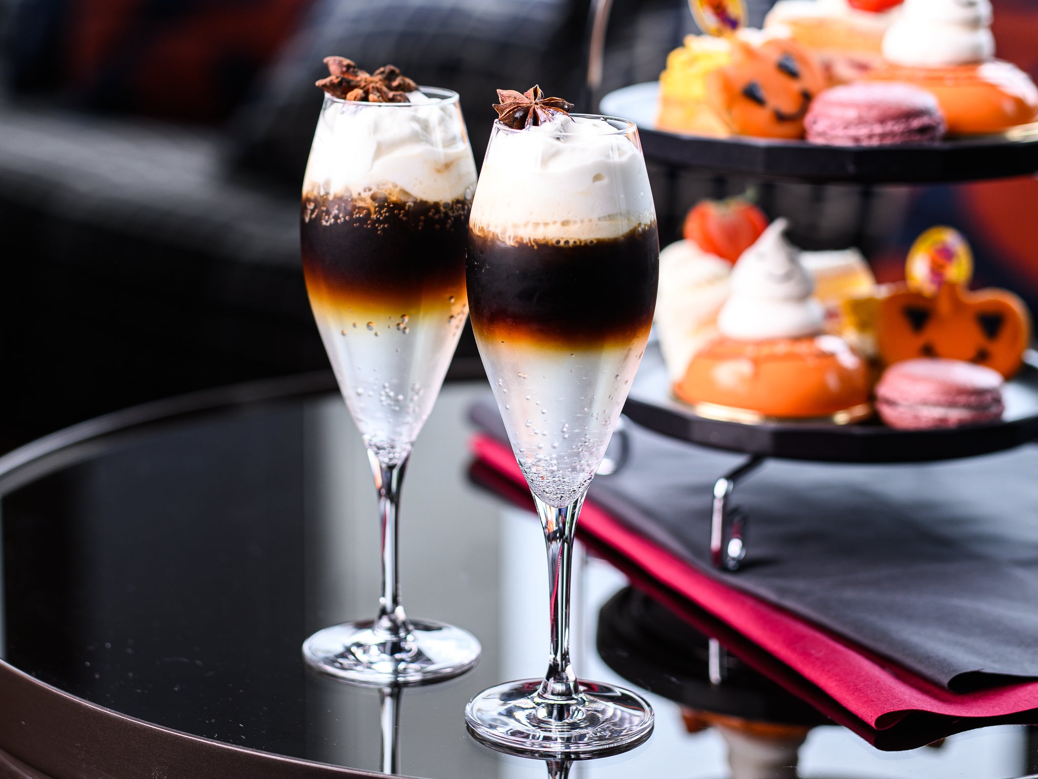 最大の特徴は、スイーツとマリアージュ(ペアリング)させるために考案されたTHE LIVELY BARオリジナルカクテル。THE LIVELY BARはホテル最上階にある東京タワーが望めるバーで、宿泊客だけでなく地元の方にも多くご来店いただいております。そんな人気バーが本プランのために用意した特別な創作カクテルは、エルダーフラワーのフレーバー、水出しコーヒー、アブサンやコアントローを使ったエスプーマクリームの3層から成るビターな味わいで、可愛らしくて甘いスイーツとは異なり、少し大人なハロウィンを感じられます。