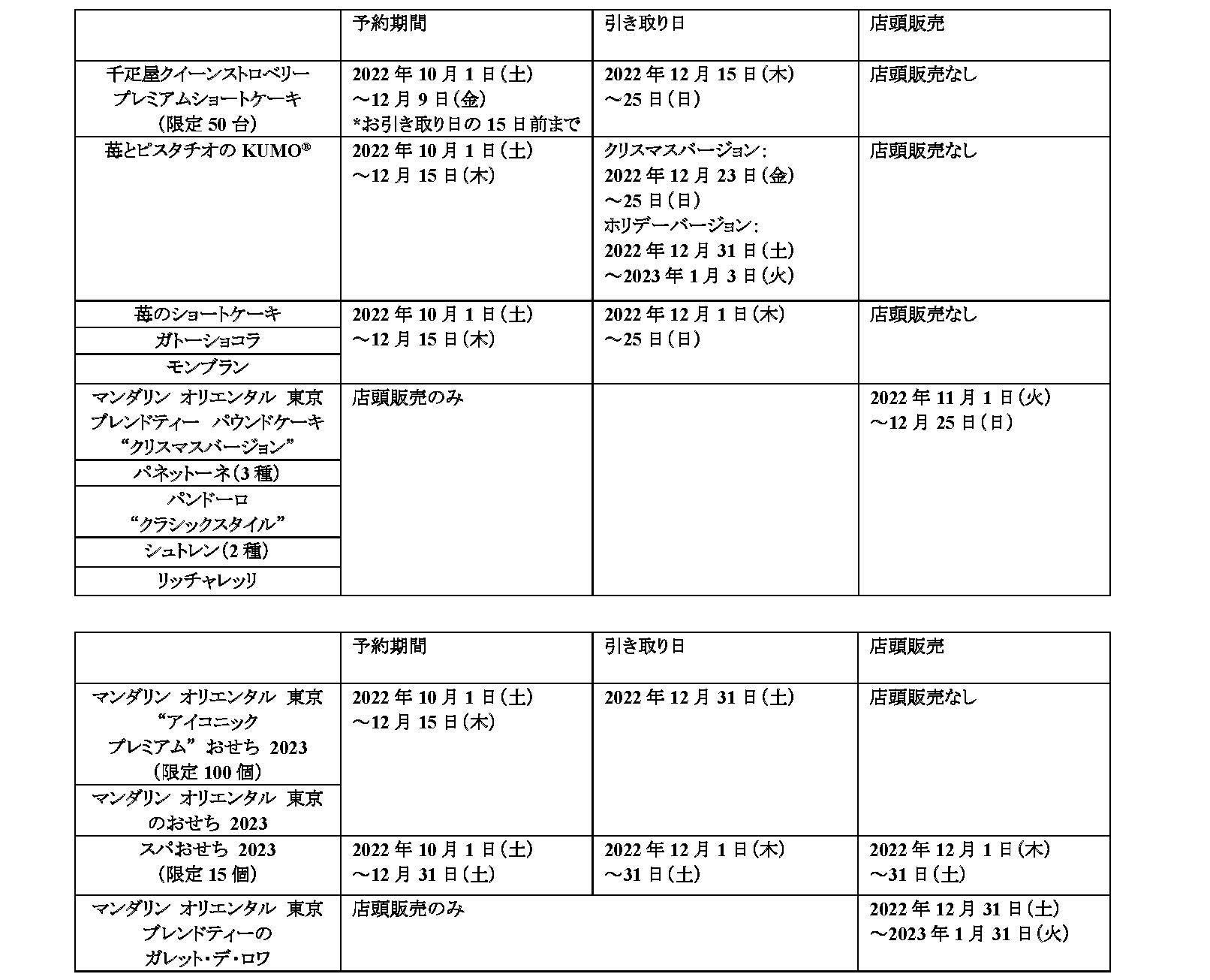 「マンダリン オリエンタル 東京 」(東京都中央区日本橋室町、運営:マンダリン・オリエンタル東京株式会社、総支配人:ポール ジョーンズ)は、2022年の「クリスマス&おせちコレクション」の予約受付を2022年10月1日(土)より開始いたします。(※店頭販売の時期は異なります)