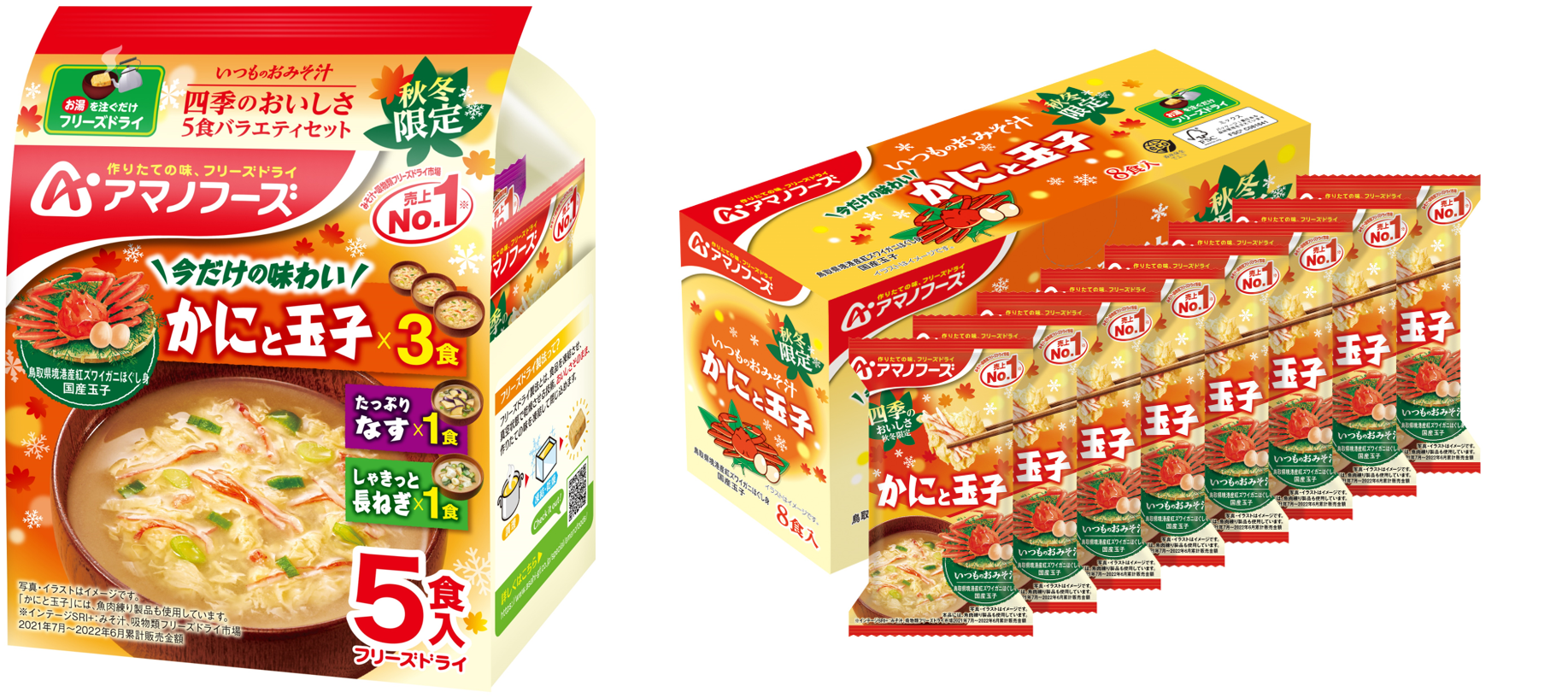 アサヒグループ食品株式会社(本社 東京、社長 川原浩)は、フリーズドライ「アマノフーズ」ブランドから、『いつものおみそ汁 四季のおいしさ5食バラエティセット22秋』『いつものおみそ汁 かにと玉子8食セット』を9月26日から期間限定で発売します。