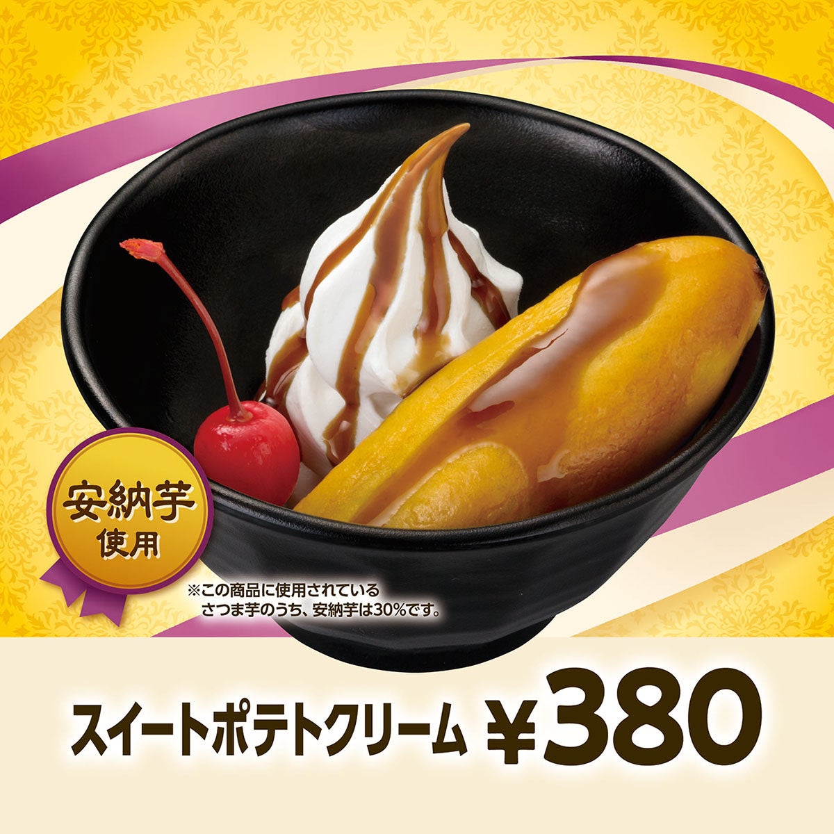 温かいほくほくのスイートポテトにスガキヤソフトクリームを組み合わせました。濃厚な黒みつと合わせた満足感のある期間限定デザートです。