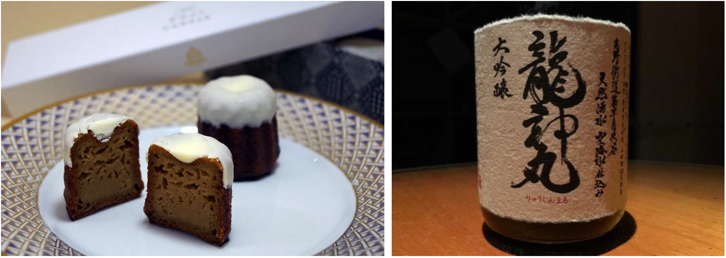 ホテル川久が所在する和歌山県の日本酒ランキング第1位「龍神丸」の酒粕を使用した限定Editionは、メジャーとされる洋酒を用いたカヌレとは一味違った風味を纏っており、日本酒の爽やかな香りと口に広がる濃厚な甘みが特徴。