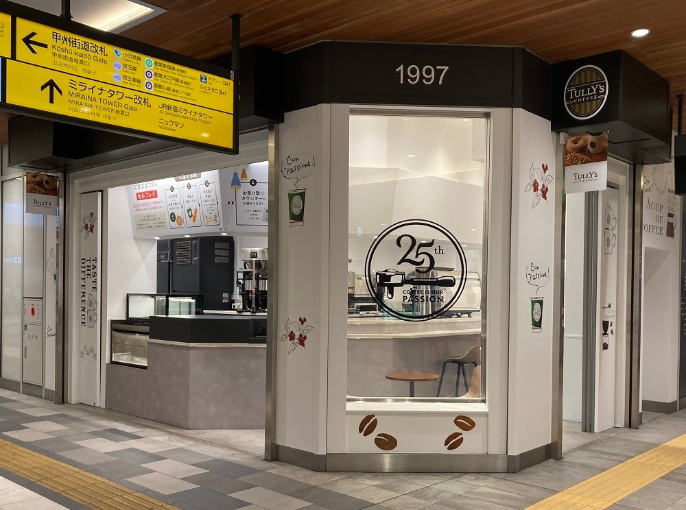 当店は、JR新宿駅ミライナタワー改札内に位置し、タリーズコーヒー創業25周年を記念した限定のロゴやイラストを取り入れたポップな外観でお客様をお出迎えします。また、タリーズコーヒーとして初めてセルフレジ「TTG-MONSTAR」を導入し、お客様の利便性向上を目指します。