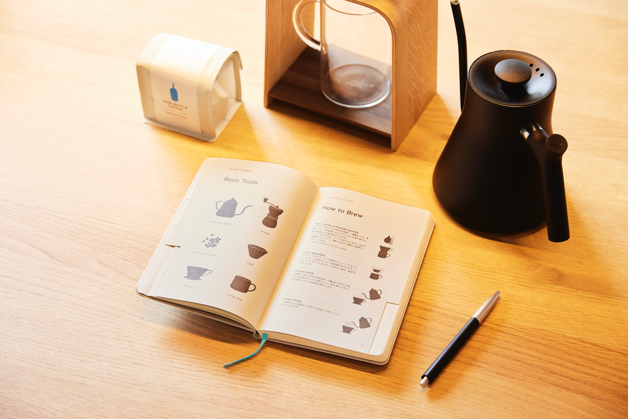 こちらのコーヒージャーナルは、日本語・英語のバイリンガルで表記され、ブルーボトルコーヒーのブランドストーリーや、コーヒーに関する知識や抽出方法などが学べる情報ページ、コーヒーのアロマやテイストを記録するワークシート、そして書き手が自由にクリエイティビティを発揮できる無地のページから構成されています。その長い歴史の中でさまざまな芸術家や思想家に愛され、現代でも多くの方がアイデアや想いを綴るモレスキンのノートブックの中でも、日本語で書かれたコーヒーに関するジャーナルはこちらが初めてとなり、コーヒーをライフスタイルに取り入れていらっしゃる全ての方がお楽しみいただける内容となりました。