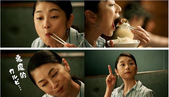 シリーズテーマは「思っきり、うまい肉。」。“こよなく牛角を愛し、焼肉に没入し、堪能する女性”の小池さんはまたまた焼肉の世界に没入します。