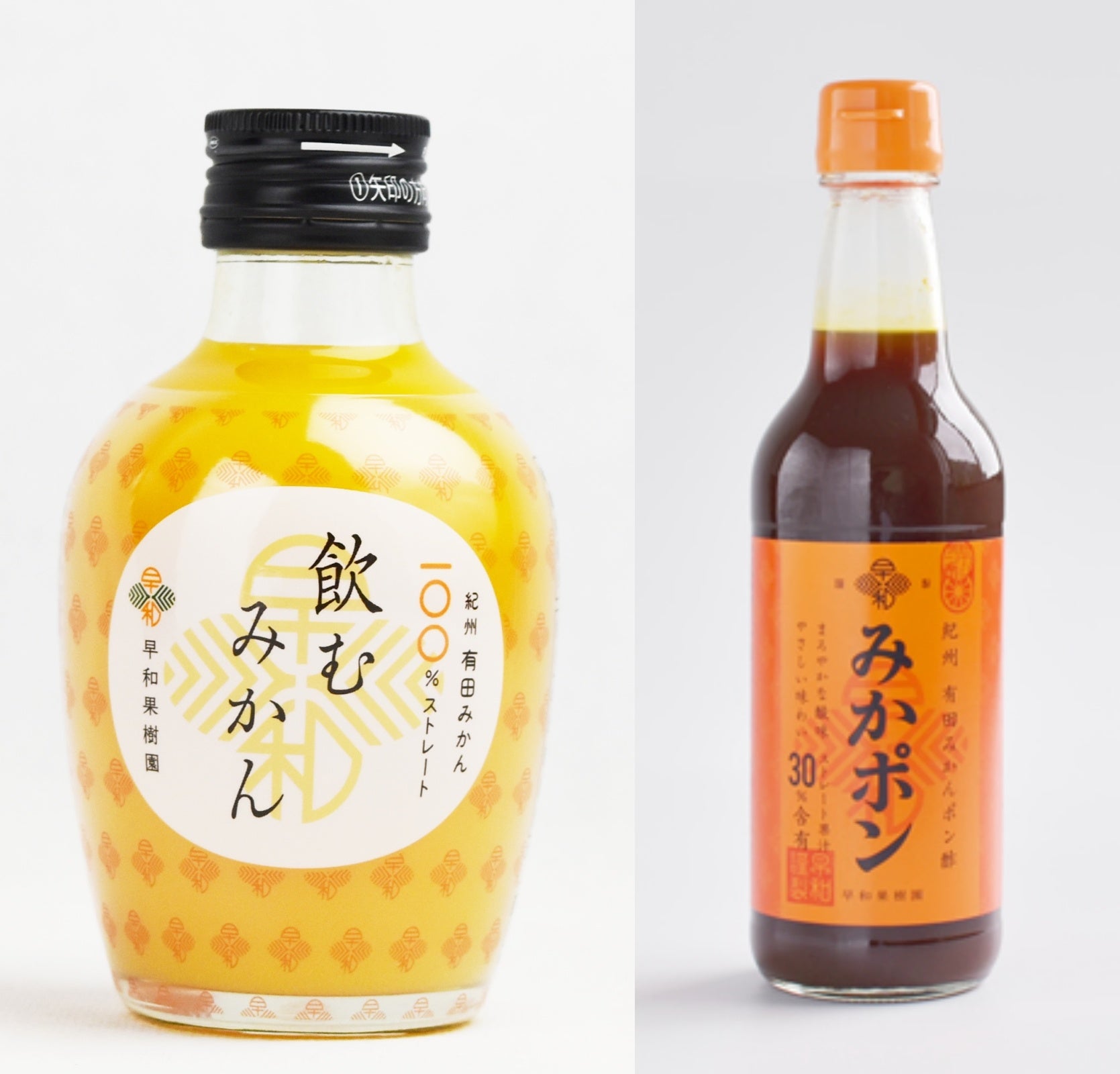 「早和果樹園」飲むみかん(180ml)291円、みかポン(360ml)591円
