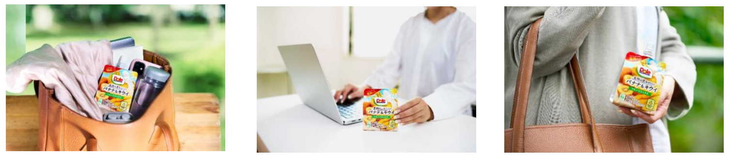 「果物の恵みゼリー®」は、2021年3月にパイナップル味を発売し、同年10月より果肉入りにリニューアルしたパウチゼリーです。今回、1年ぶりに登場する新味は、ドールが誇るバナナにゴールドキウイを組み合わせたフルーツミックス味です。いつでもどこでも、すぐに食べられるパウチタイプでありながら、フルーツならではの栄養と、腹持ちのよい満足感を兼ね備えており 、忙しい日の朝ごはんや隙間時間の間食にもぴったりです。
