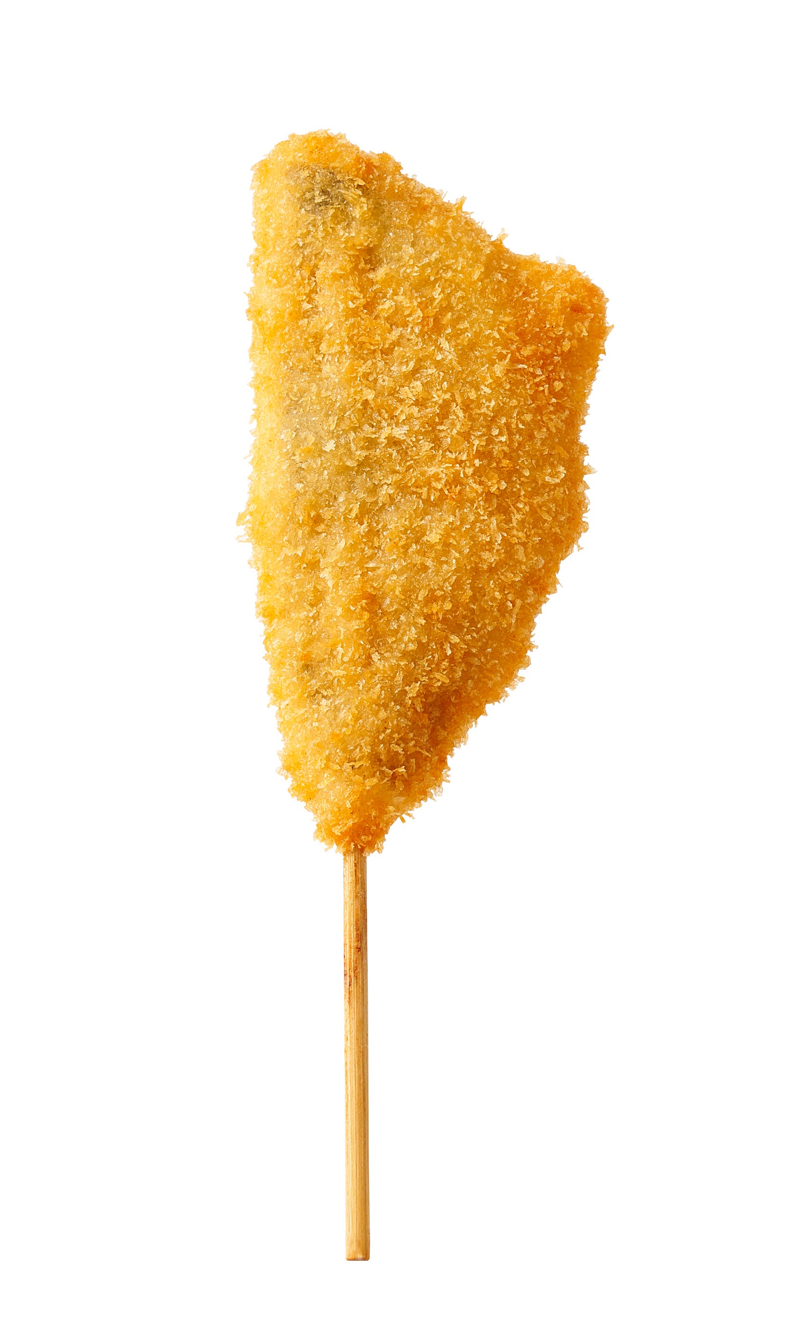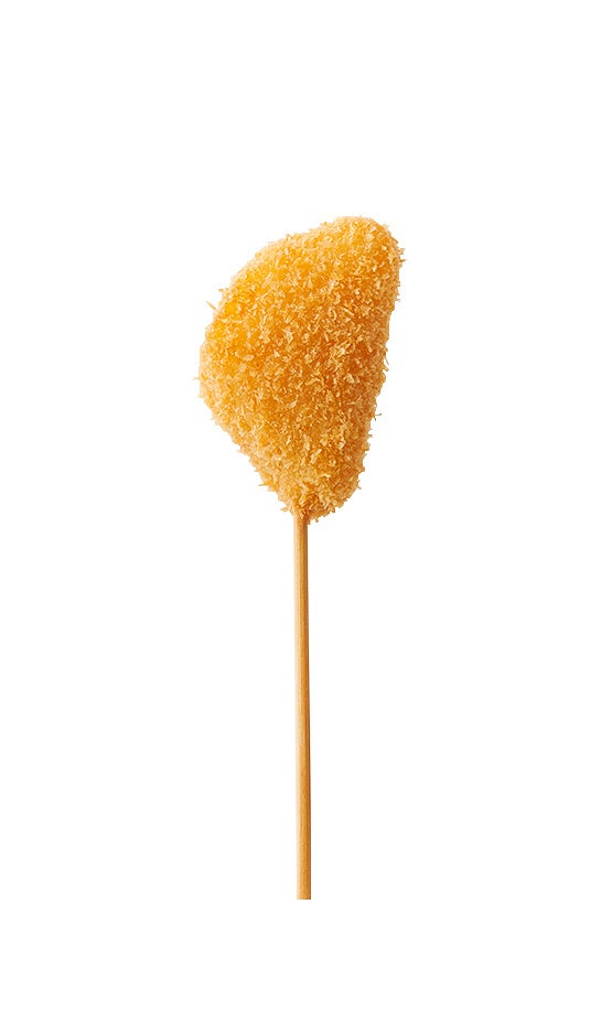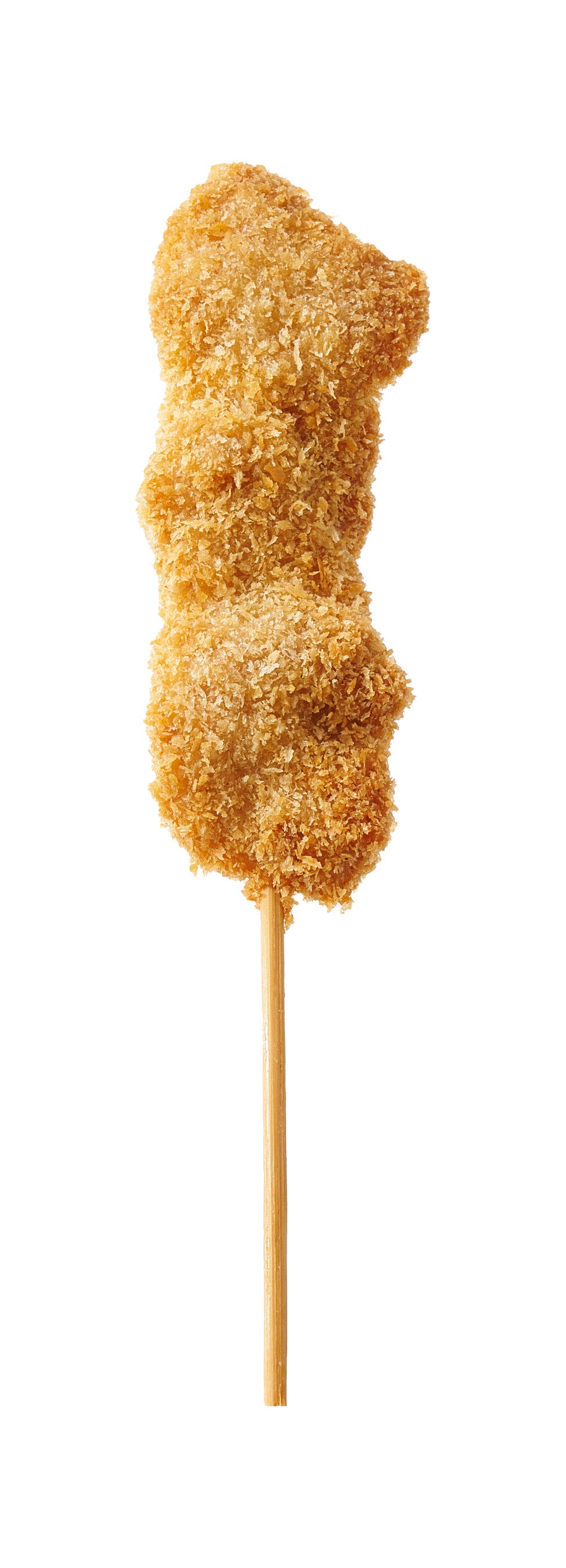 大人気のささみ串に明太子をのせました。ささみのやわらかい食感と明太子の旨味が味わえる串カツです。