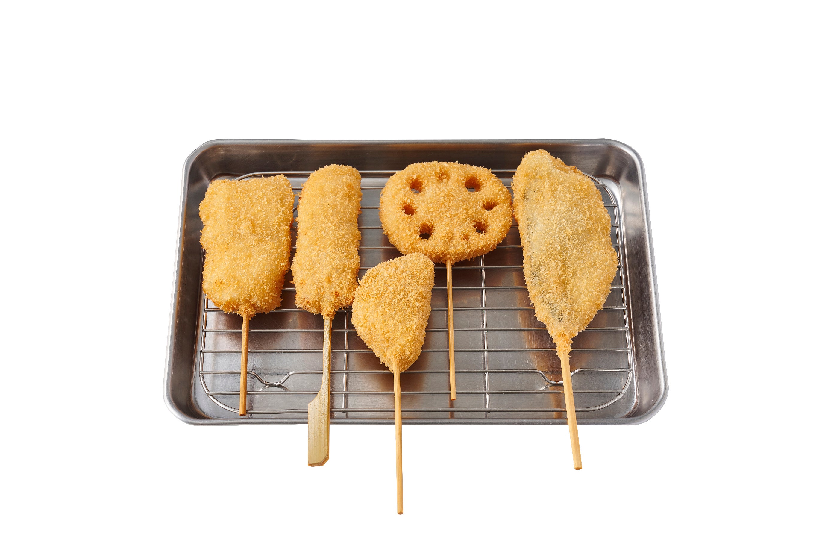 「イカ・串カツ豚・さつまいも・レンコン・アジフライ」がお得なセットに。期間限定串と人気の定番串を一度に味わえるうれしい盛り合わせです。