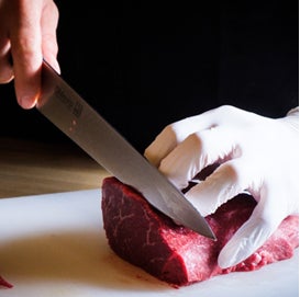 赤身肉の高級部位であるヒレ肉の中でも、最も上質な部位が「シャトーブリアン」。牛1頭から僅か2kgほどしか取れず一般の市場では入手が困難のため、別名“幻の部位”とも呼ばれています。驚くほどやわらかな肉質が特徴、ヒレの部分のため、脂肪が少ないのも「シャトーブリアン」の特徴です。