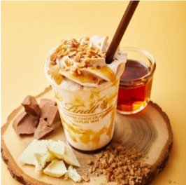 「メープル ショコラドリンク with ショコラストロー」 は、色が濃く、濃厚な味わいの、厳選されたカナダ・ケベック州産ピュアメープルシロップを贅沢に使用。ホワイトチョコレートと合わせた深みのある秋らしい味わいに仕上げ、まるでアートのような美しい見た目も楽しめます。トッピングに散りばめられたメープルシュガーを口の中で砕く瞬間、芳醇な味と香りが口いっぱいに広がります。さらに、リンツのチョコレートでできた“ショコラストロー”で飲むことで、口元の体温で溶けだしたダークチョコレートとドリンクが混ざり合い生まれる味わいの変化や、パリパリとしたチョコレートの食感を楽しむことができる、リンツのこだわりが詰まった特別な一杯です。