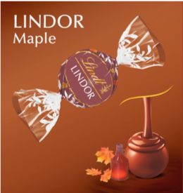 リンツの定番「リンドール」にもドリンクに合わせ、秋を感じられるメープルフレーバーが期間限定で新登場。メープルシュガーが練り込まれたフィリングをミルクチョコレートのシェルに閉じ込め、メープルの甘みが引き立つとてもなめらかな味わいに仕上げました。