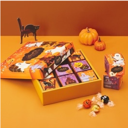 どのリンドールが出てくるかは開けてからのお楽しみ!ハロウィン限定のシェアリングボックスは、リンドール3個がランダムにアソートされたキューブが9箱入ったシェアギフト。大人数でシェアするのはもちろん、職場などで配るプチギフトとしてもぴったりです。