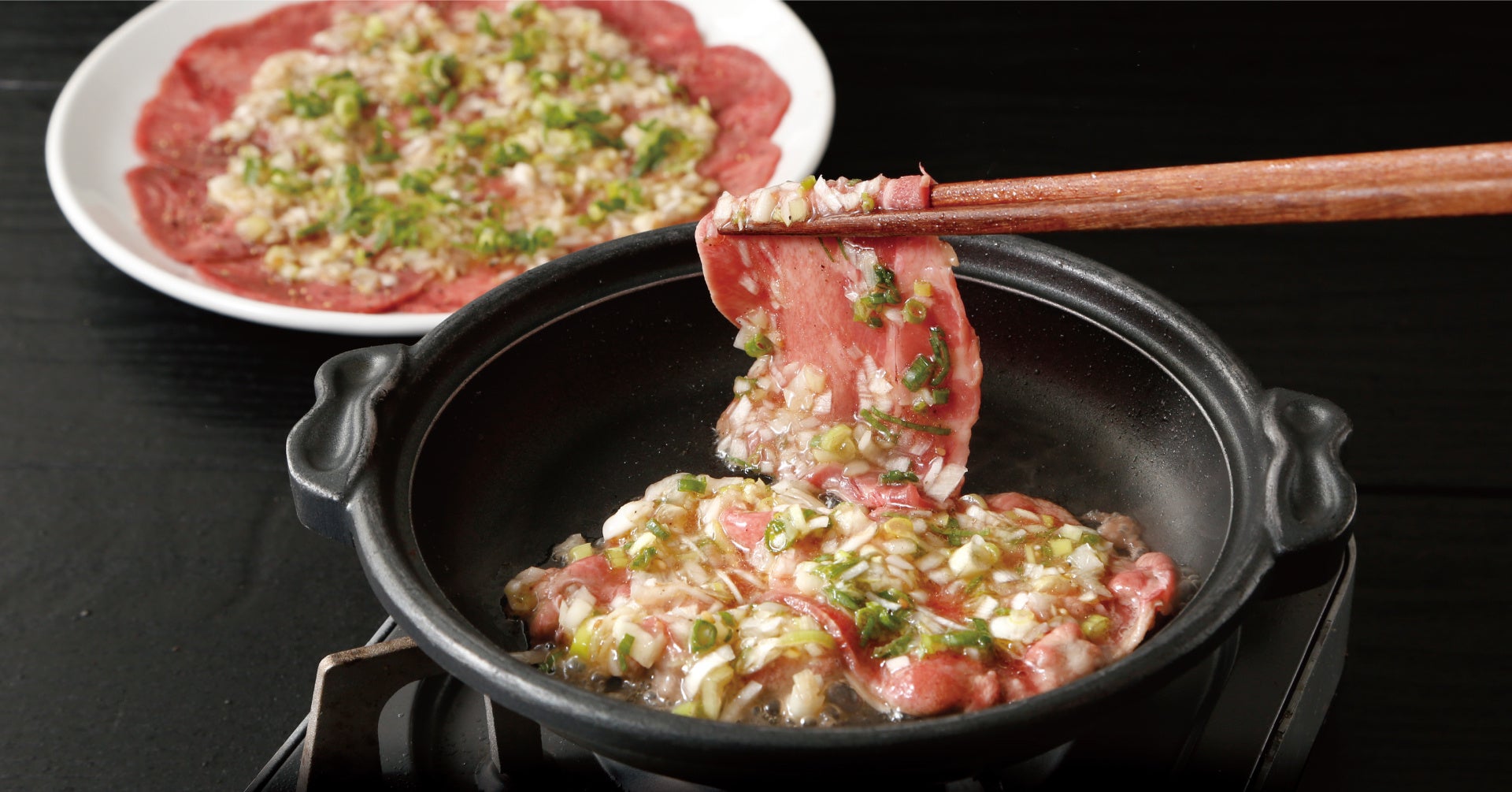 - 牛たん陶板焼き 100g 各1,290円(税込1,419円) ・ガーリック味 ・ねぎ塩味