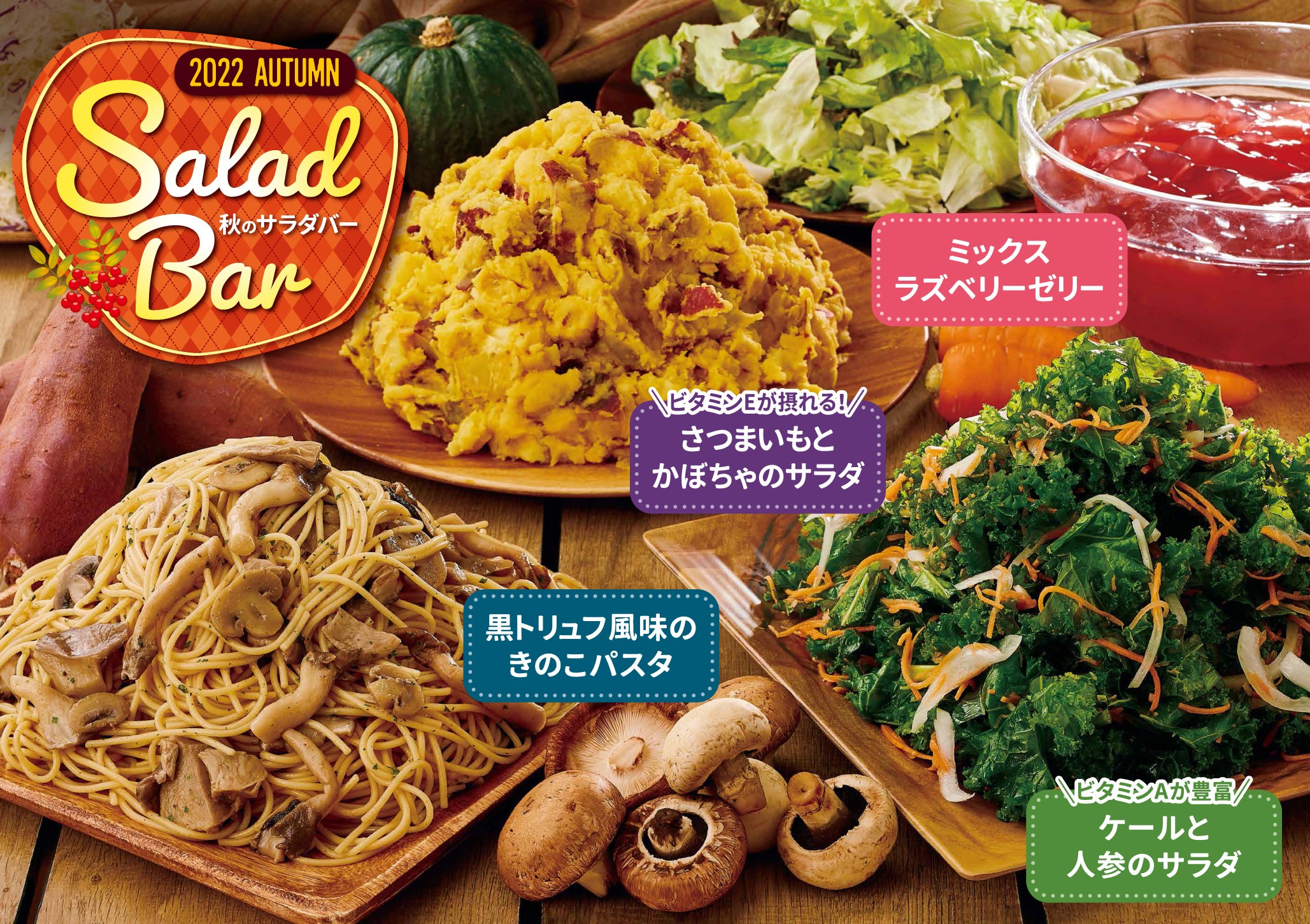 株式会社ビッグボーイジャパン(代表取締役社長:長久保 文康 本社:東京都港区)が展開するファミリーレストラン「ビッグボーイ」「ヴィクトリアステーション」では、9月16日(金)より、新鮮な生野菜や季節のフルーツなど常時16種類以上をそろえるサラダバーに、さつまいもやかぼちゃ、きのこなど秋が旬の食材を使ったメニューが登場します。