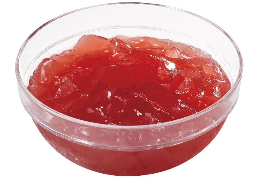 ラズベリーの芳醇な香りといちごピューレの甘さが特長です。食後にピッタリなさっぱりとしたゼリーです。