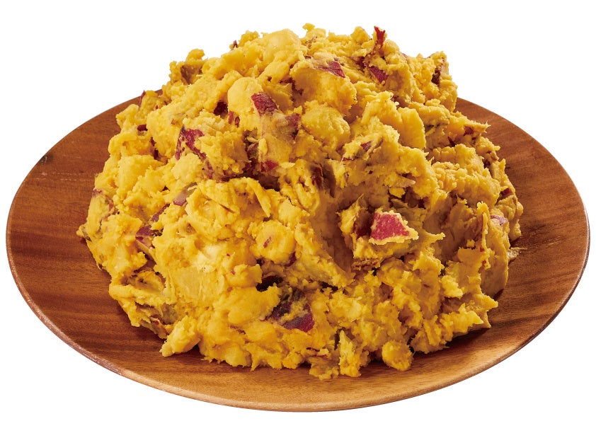 例年秋のサラダバーで人気の高いさつまいものサラダに、かぼちゃを加え、より秋を感じられるサラダにブラッシュアップ。店内でマッシュしたさつまいもにビタミンEが豊富なかぼちゃを合わせ、メープルシロップ風味に仕上げました。秋に旬を迎えるさつまいもやかぼちゃの甘さと、メープルシロップの香りが相性抜群です。