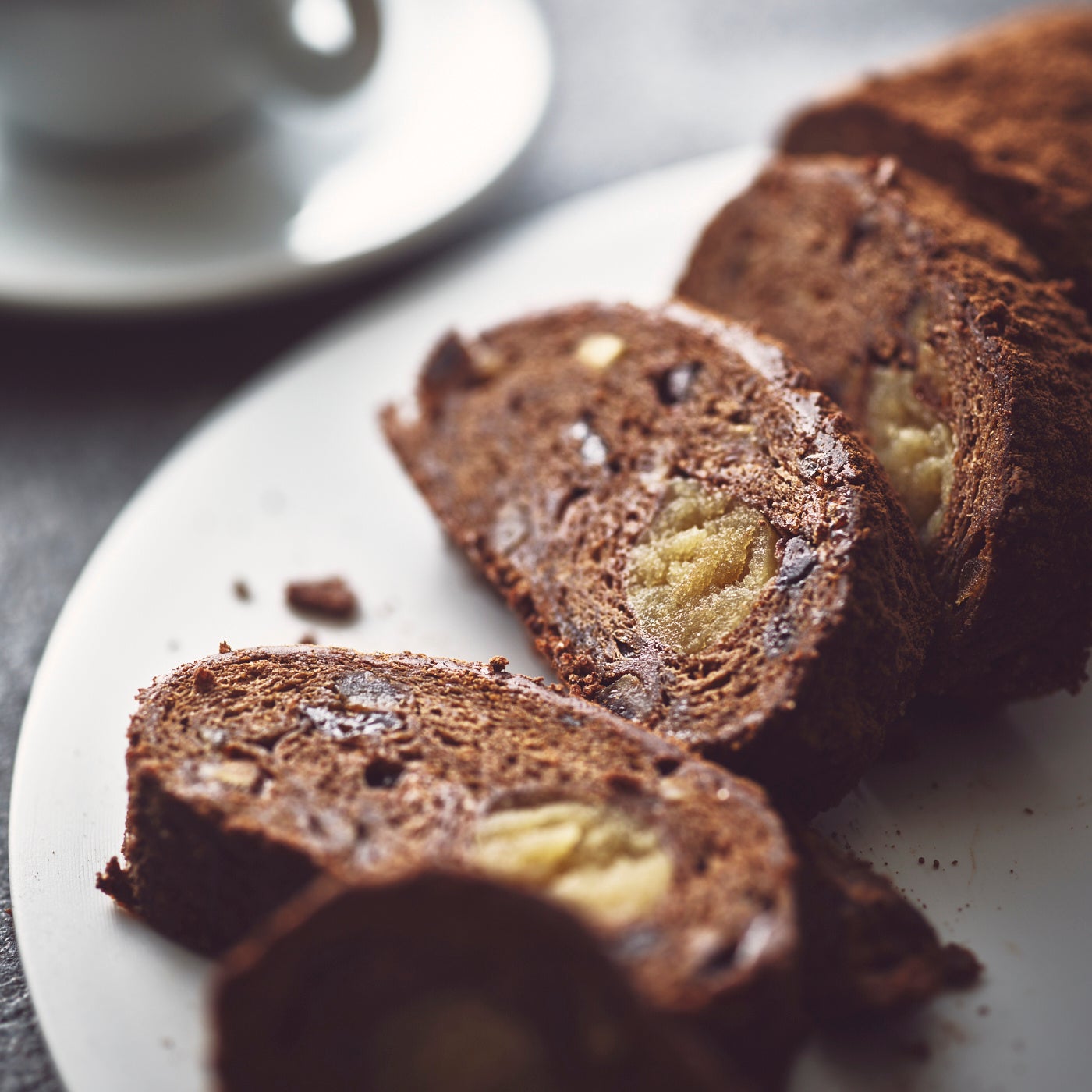 昨年大好評をいただいた、シュトーレン・ショコラ。シェフこだわりの、南米・エクアドルの固有種である希少なアリバ種のカカオ豆からしか引き出せない上質なチョコレートと、香り高いブランデー・アルマニャックにじっくり漬け込んだドライフルーツにマジパンも加えて、芳醇でエレガントなシュトーレンに仕上げました。
