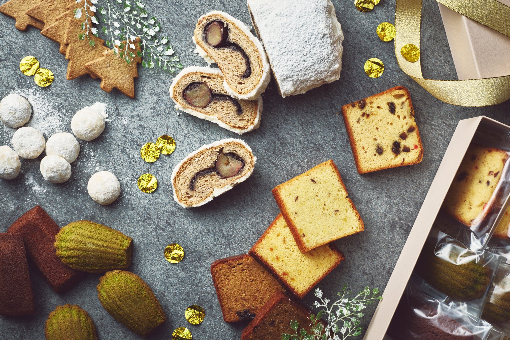 栗とけしの実のシュトーレン|栗のパウンドケーキ|チョコレートパウンドケーキ|オレンジパウンドケーキ|フルーツパウンドケーキ|林檎&キャラメルのパウンドケーキ|フィナンシェプレーン|マドレーヌ|もみのきスパイスクッキー|スノーボールクッキー