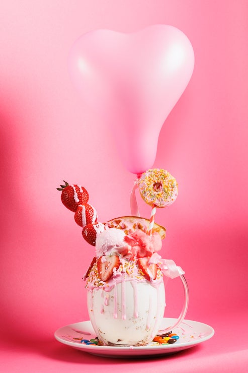 イチゴをベースにしたド派手なバルーンパフェ♪てんてんならではの世界観を楽しむことが出来ます。