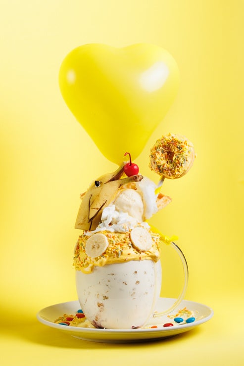 バナナとチョコレートをベースにしたド派手なバルーンパフェ♪定番でどこか懐かしさを感じさせるパフェです。
