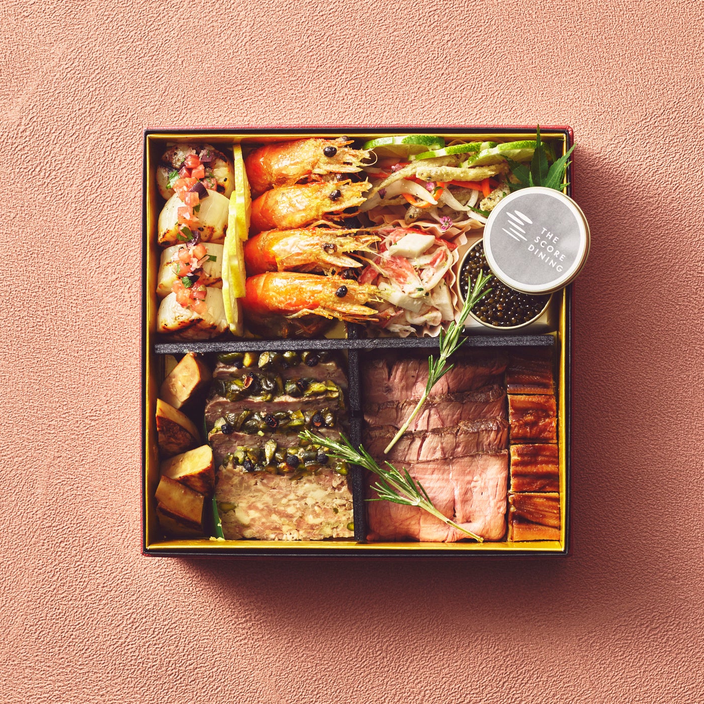 インターコンチネンタルホテルズ&リゾーツのひとつとして2003年に開業した東京、品川駅港南口直結のラグジュアリーホテル、ストリングスホテル東京インターコンチネンタル。この度スコアダイニングより我らが誇る、4人のスターシェフたちの匠の技を集結させた、ホテルとして初のおせち、極み三段重を販売いたします。